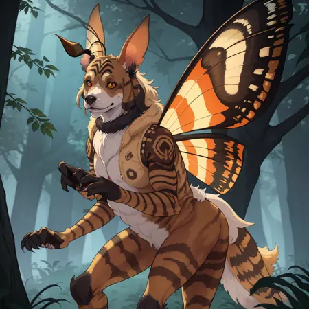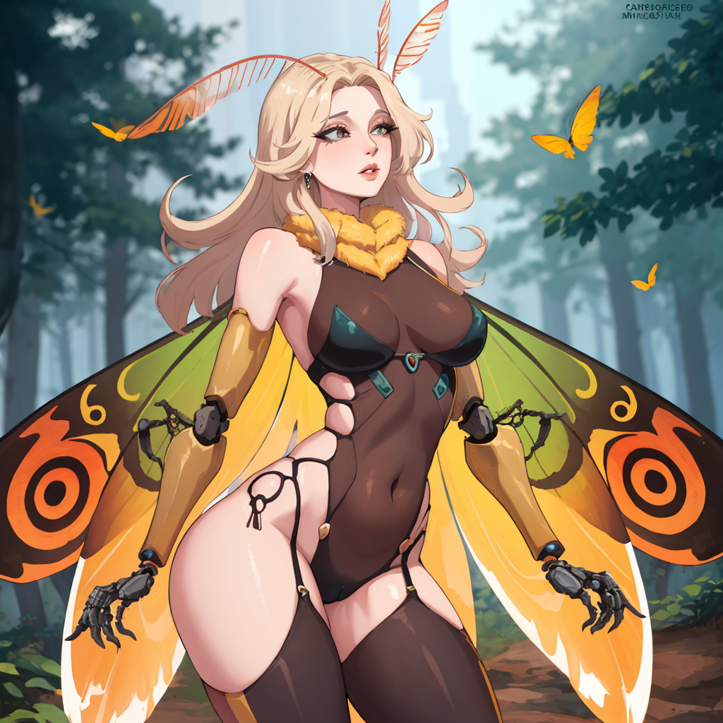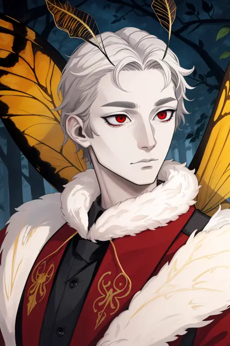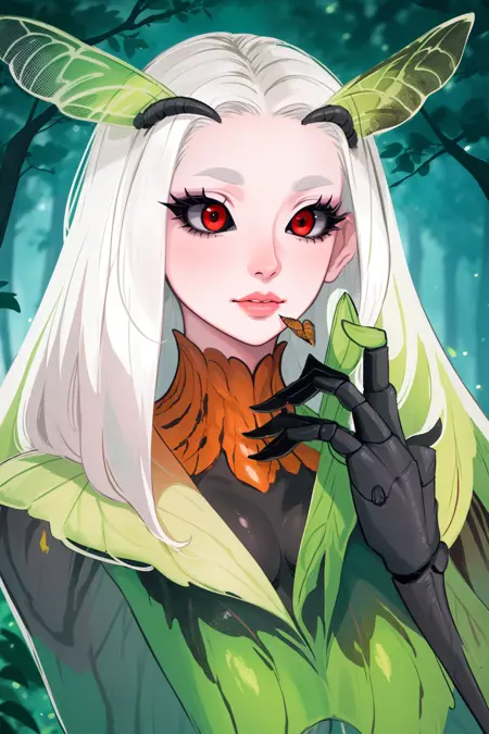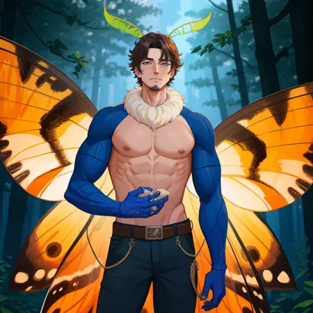 lora:mothPeoplev120:0.7(蛾人女性,昆虫翅膀,触角) 或 (蛾人男性,昆虫翅膀,触角) 男性使用较低的 LoRA 权重!