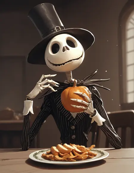 이 LoRA는 호박 왕 잭 스켈링턴의 외모를 생성하기 위해 제작되었습니다.
