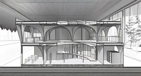 使用时,建议使用自然语言提示词,建议用“architecture, a section perspective drawing of a ……”进行描述,以下是一些示例: