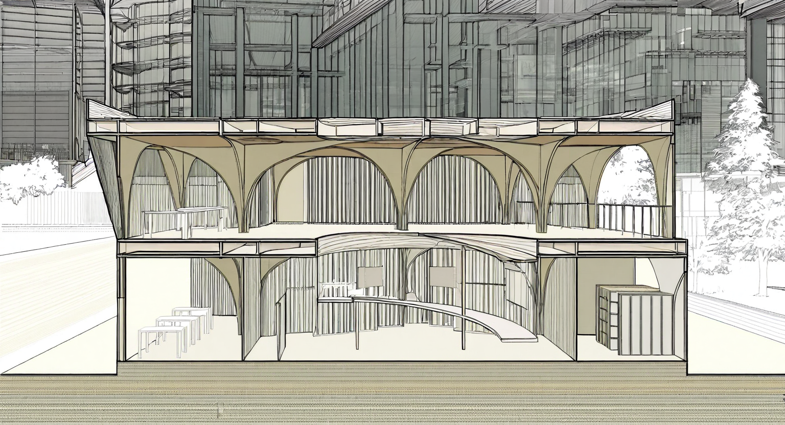 使用时,建议使用自然语言提示词,建议用“architecture, a section perspective drawing of a ……”进行描述,以下是一些示例: