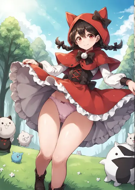 Codename Red Riding/Red Riding Mina from The Battle Cats mobile game.