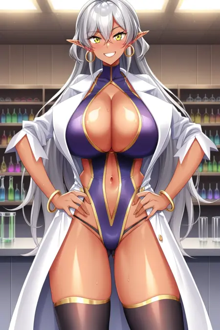 2 实验室外套,肚脐,乳沟,黑色过膝袜,泳装,暴露服装,手镯