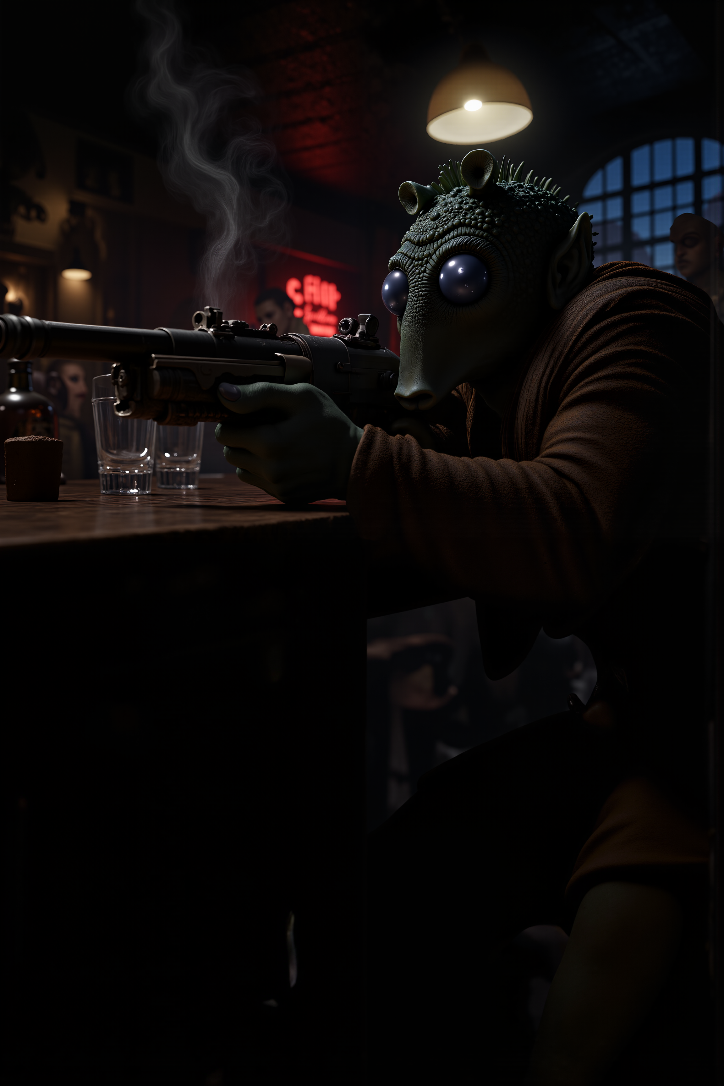 Trigger is "rodian alien". It sometime helps to add "snout" or "antennae" somewhere in the prompt.