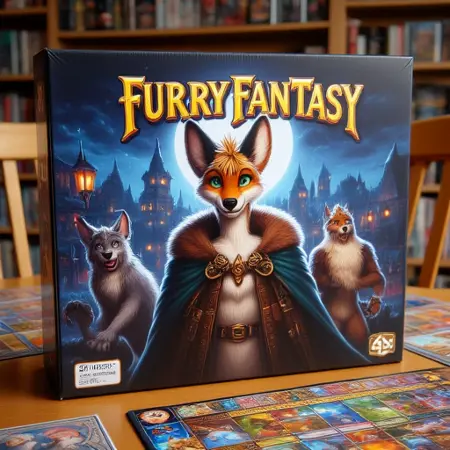The box features an anthropomorphic (FURRY THING) with a playful expression, wearing a (COLOUR) coat, standing in front of a (POSSIBLY LESS FURRY THING).