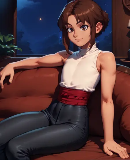 if you want to keep him consistently male, could add flat chest, when not wearing poncho - I suggest adding things like breasts, 1girl, in NEG - some NSFW results may shrink body size due to the ps2 (game) model training
