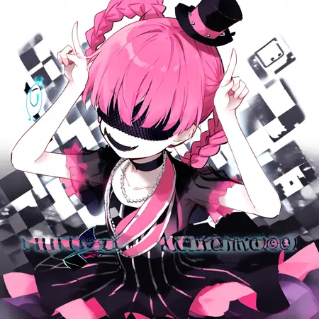 c18h27no3, blindfold, twin braids, pink hair, mini hat