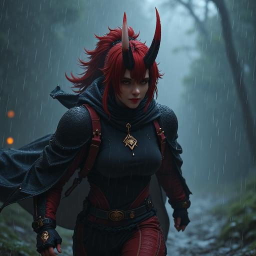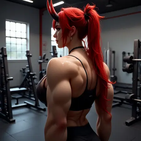 By default it will create Zeriastra with red hairs and the ponytail, but the model has been trained also for different aircut and colors. The default body is muscular, but can be easily guided with prompt adding "slim" to the description