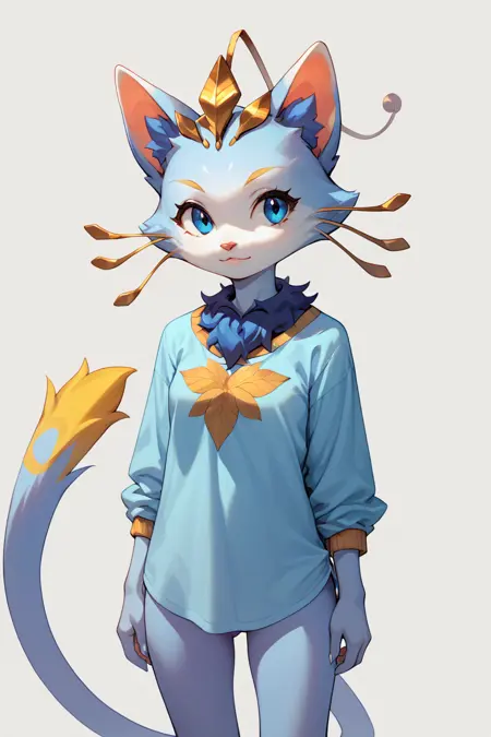 强化标签:蓝色毛发、胸毛簇、黄色胡须、金色眉毛、头饰、项链、黄色尾尖