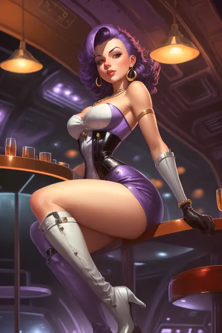 이 키워드만 사용해도 펄프 스타일 복장의 매력적인 우주 여성으로 변환됩니다.