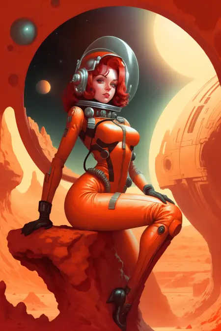 이 LoRA는 펄프 스타일의 우주 여성을 다시 되살립니다.