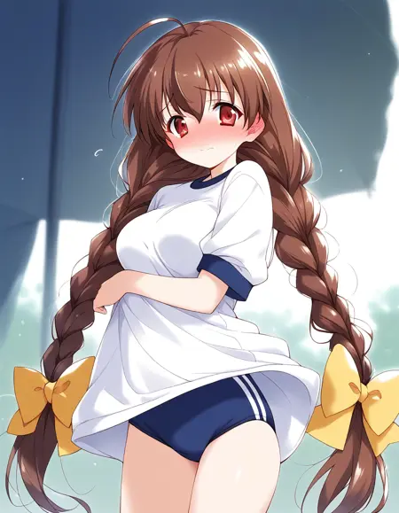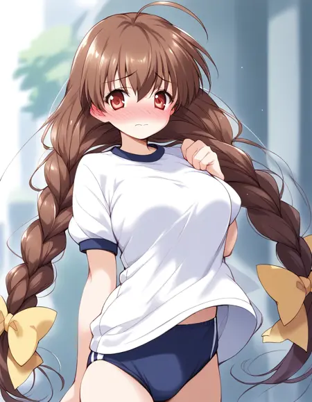 ツイン三つ編みでスク水を着た女の子がピンク色の浮き輪&白いタオルにくるまれて赤面してるという絵で大変可愛いのでlora化してみました。1枚絵の子なのでとくに解説はなし。