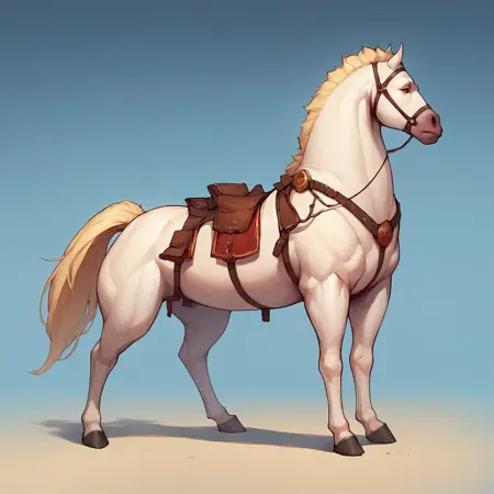 기본적으로 안장 없이 그려진 이미지가 거의 없기 때문에, 학습 과정에서 안장과 끈이 자연스럽게 포함되었습니다. 만약 이를 제거하는 방법을 알고 계신다면, 업데이트된 버전을 위해 저에게 연락해 주세요.