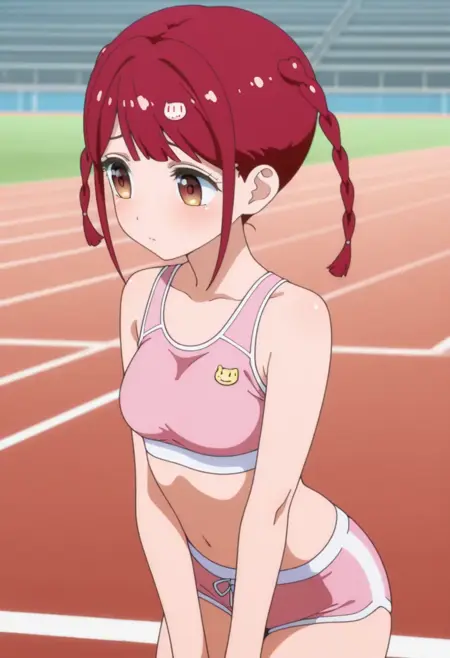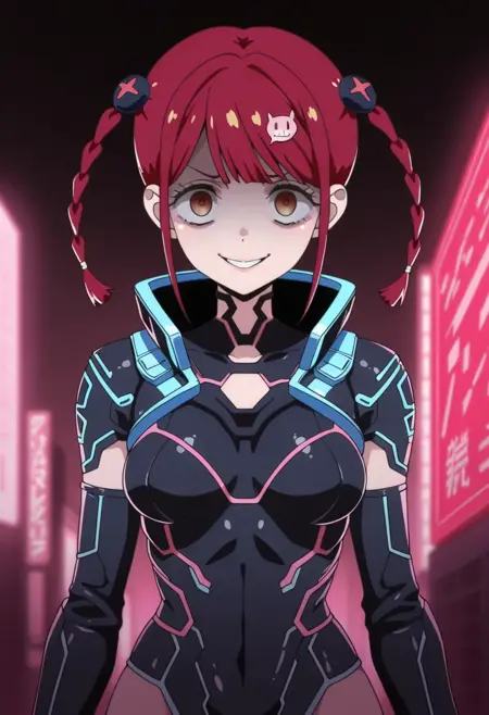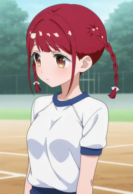 Tokonome Mamori, source_anime, 1girl, solo, bangs, hair ornament, brown eyes, braid, red hair, twin braids