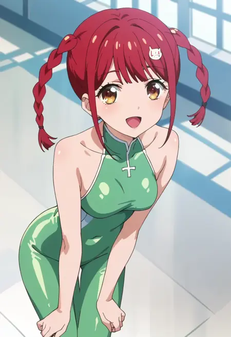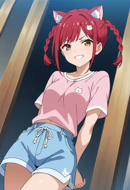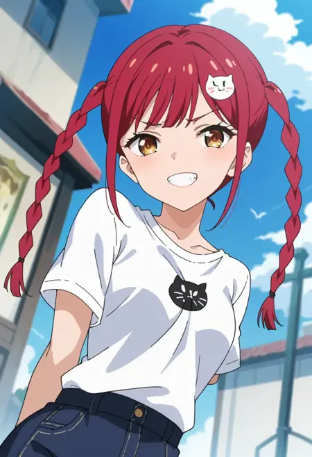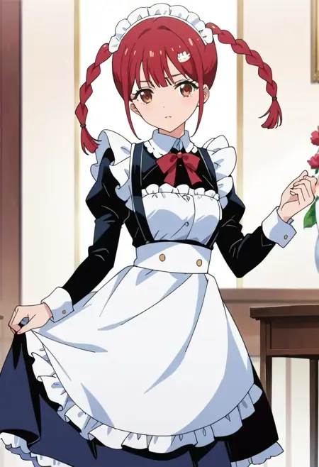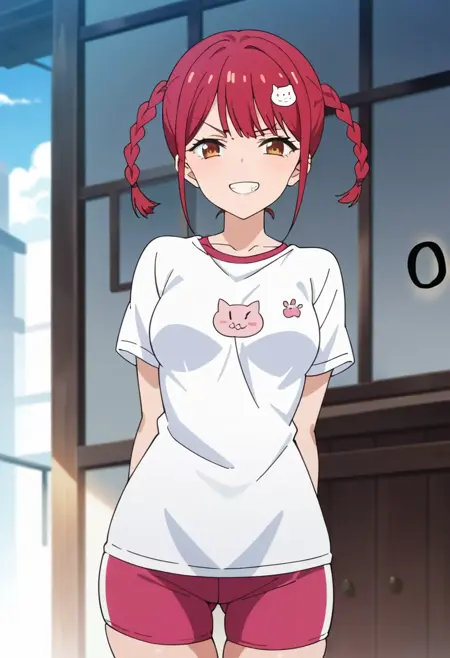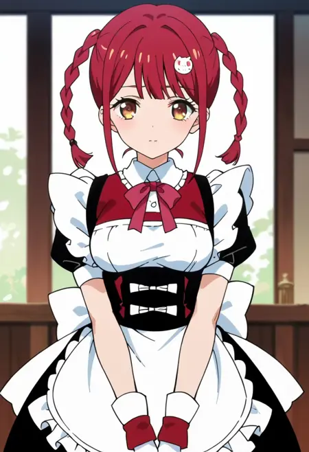 Tokonome Mamori, source_anime, 1girl, solo, bangs, hair ornament, brown eyes, braid, red hair, twin braids