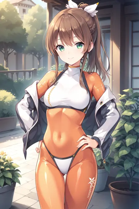 trigger word: tove(suit), bodysuit, orange bodysuit, highleg panties, open jacket,