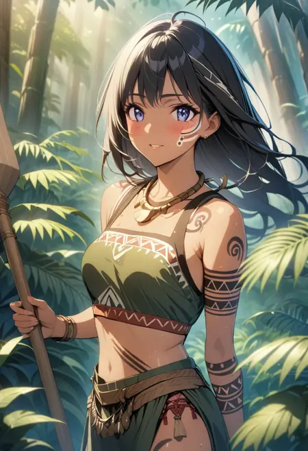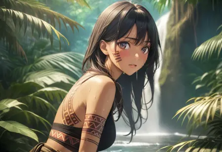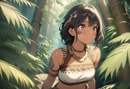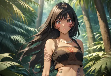 アマゾン熱帯雨林の先住民族をモチーフにしたアニメ風の服と化粧を目的として作成されました。