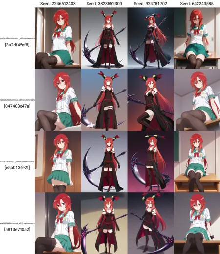 重み:0.5~1、衣装には1、外見のみには0.7を使用してください。