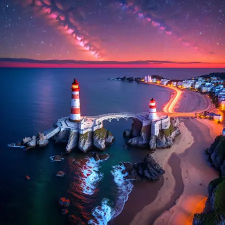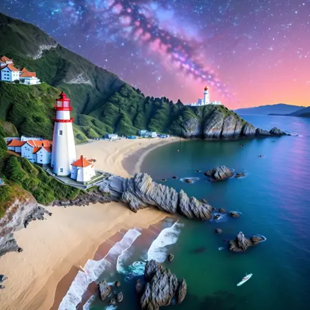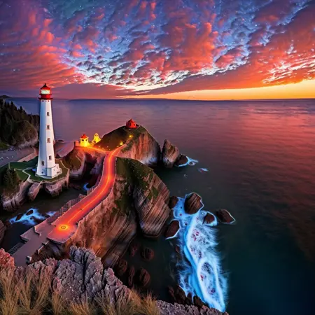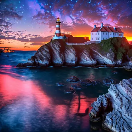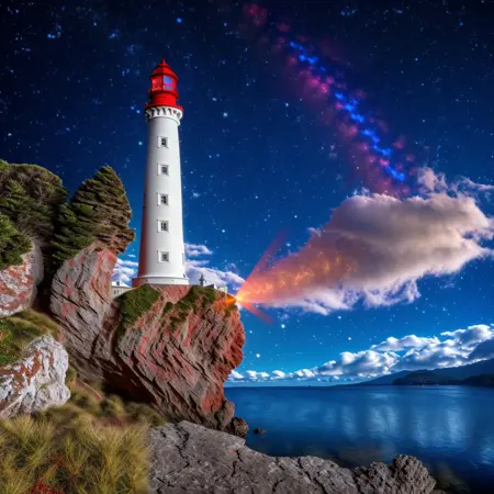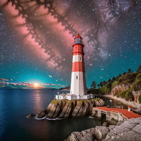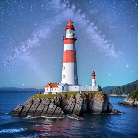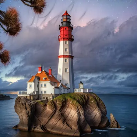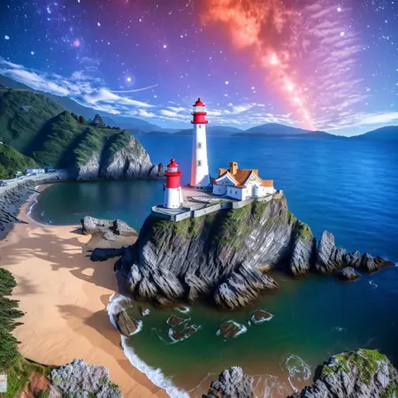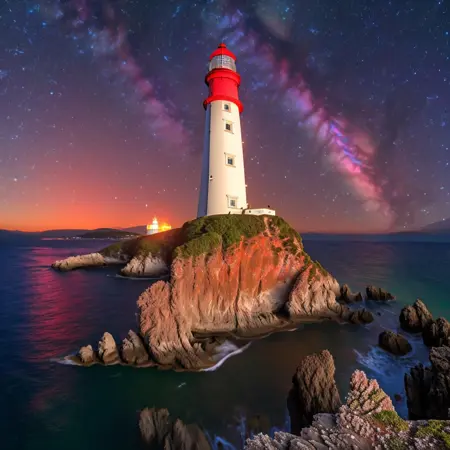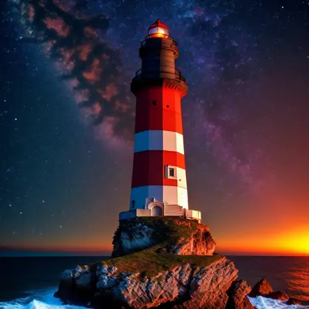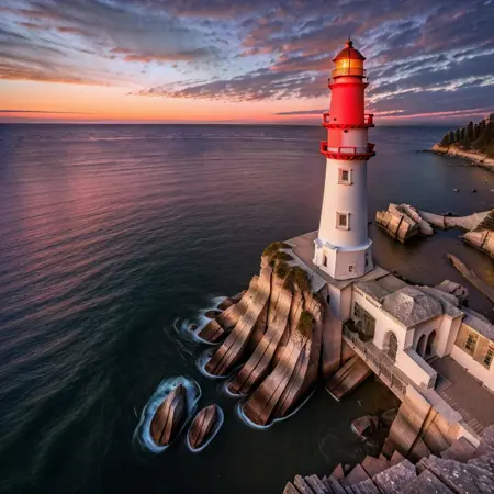 このモデルは、従来のものよりも美しく見える、周囲を含んだ赤白の灯台を生成します。
