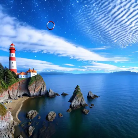 このプロンプトだけでは、追加のステップなしではほとんどの場合、画像品質が最悪になります。原則として、プロンプトには「lighthouse」と「NewLighthouseEmbedding:0.5」が含まれていて、重みに異なる値を設定する必要があります。