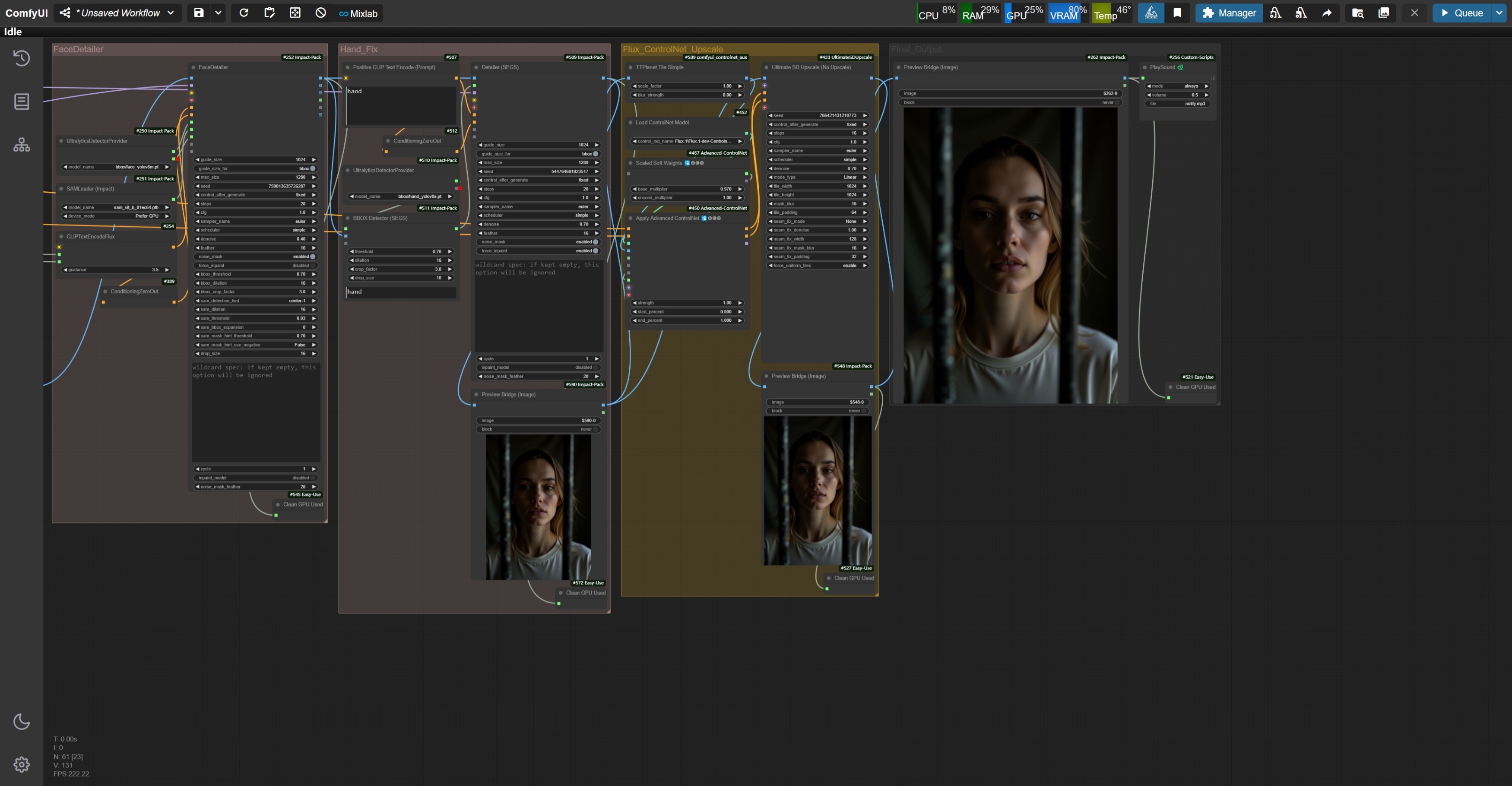 zyd232's Workflow for Flux - ControlNet Upscale + Expression Editor + Face Detailer + Hand Fix