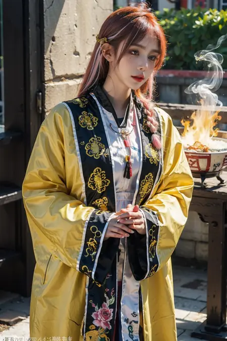 基于10张不同的512x768道家道袍(道袍)(天师派道袍)照片,使用MajicMix写实风格v4模型进行LoRA训练。