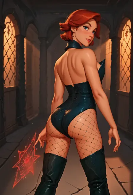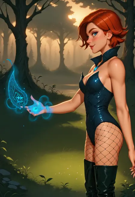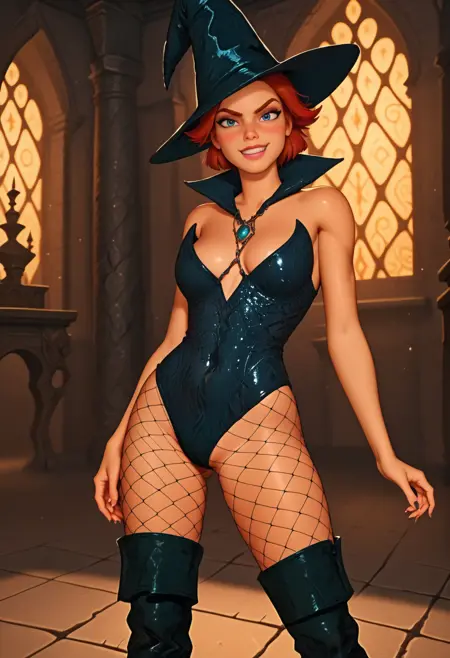 DDS_SexyWitch, sequin leotard, black leotard, fishnet pantyhose, thigh boots, witch hat
