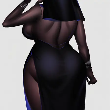 | 학습된 단어 | ElizaTower, 1girl, blonde hair, long hair, side bangs, blue eyes, blue lipstick,복사됨! modified nun habit, black dress, sleeveless black dress, high slit dress, see-through bodysuit, blue floral lingerie, black veil with blue lining, white neck wrap, cross earrings, silver bracelet, black gloves, black high heels복사됨! |