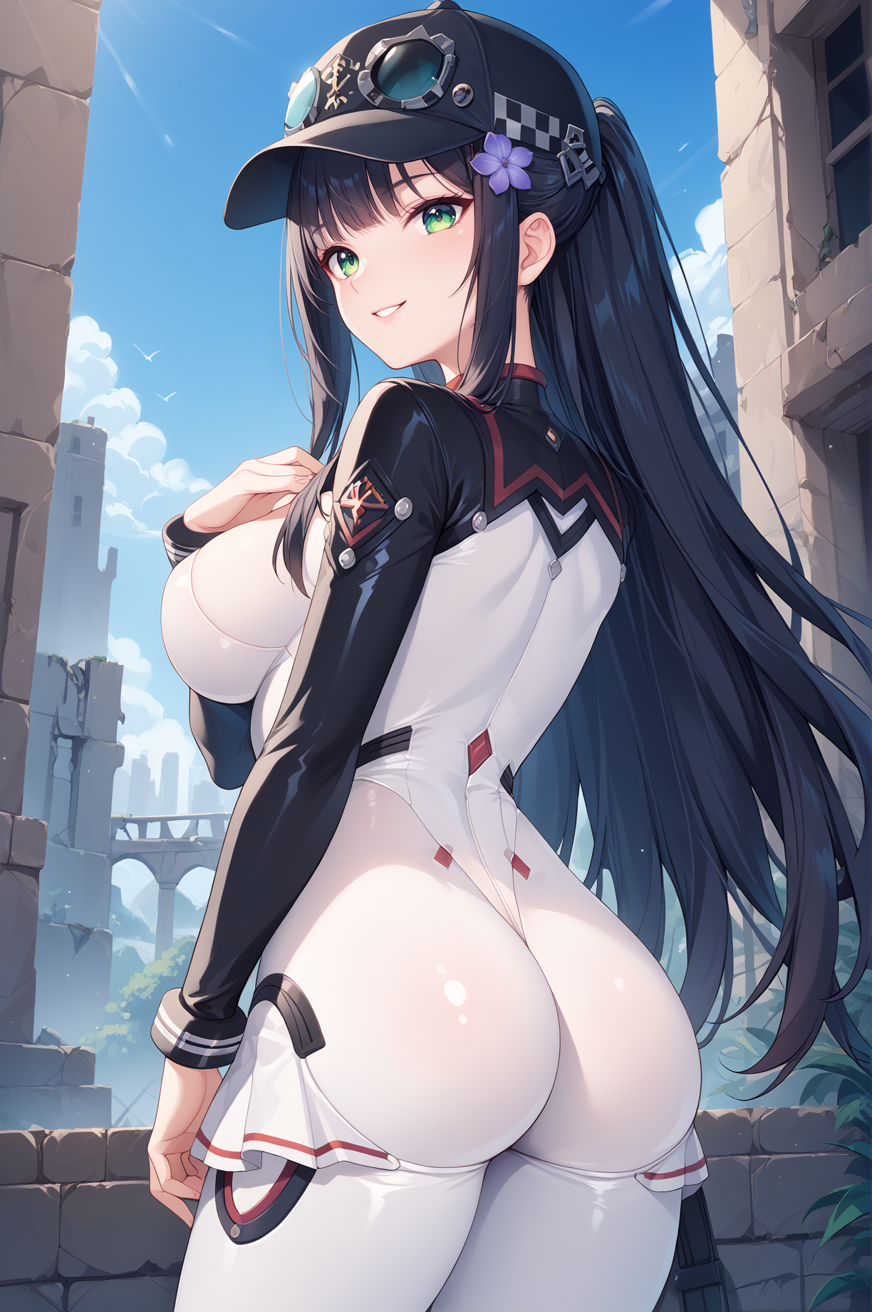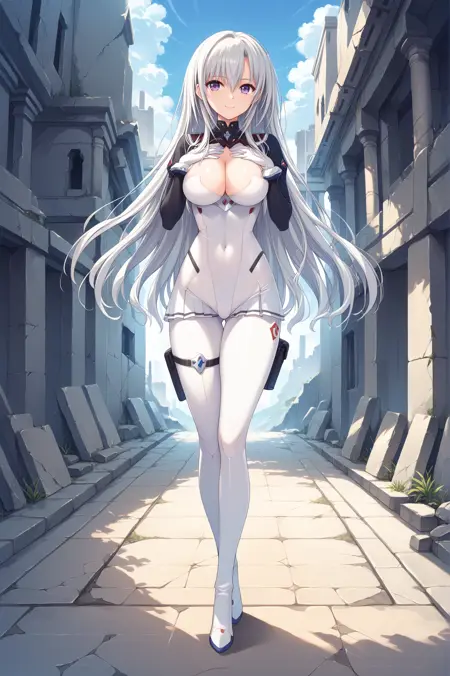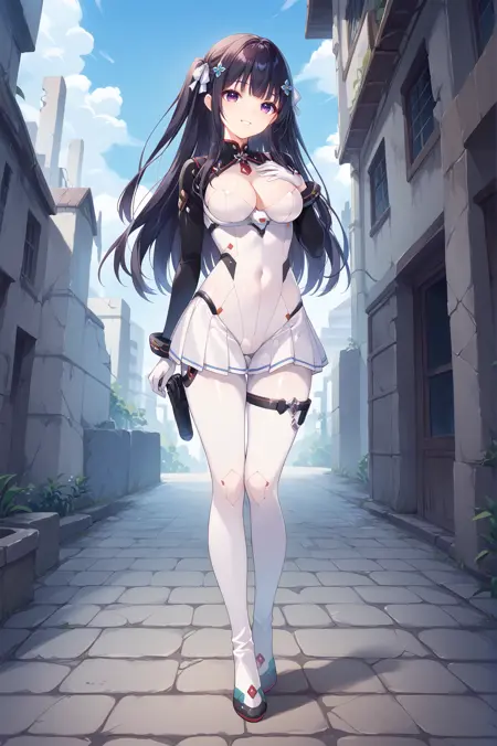 klukai(hk416), 耸肩(衣物), 连体衣, 紧身衣, 裙子, 白色连体衣, 乳沟, 手套,