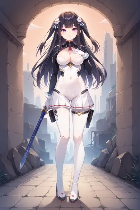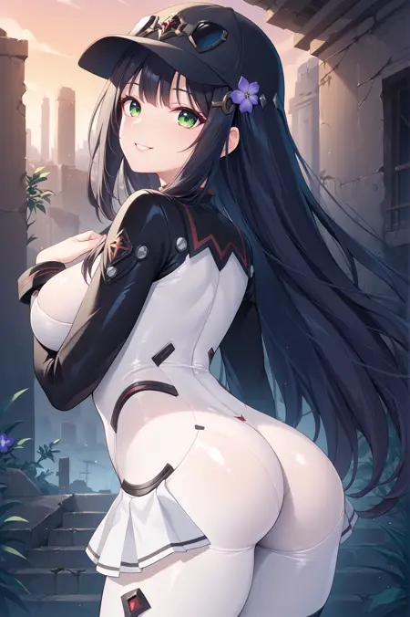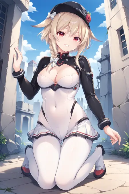 klukai(hk416), 어깨 으쓱하기(옷), 바디수트, 리오타드, 치마, 흰 바디수트, 가슴 노출, 장갑,