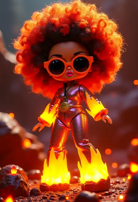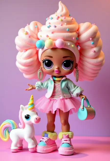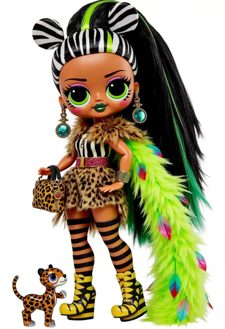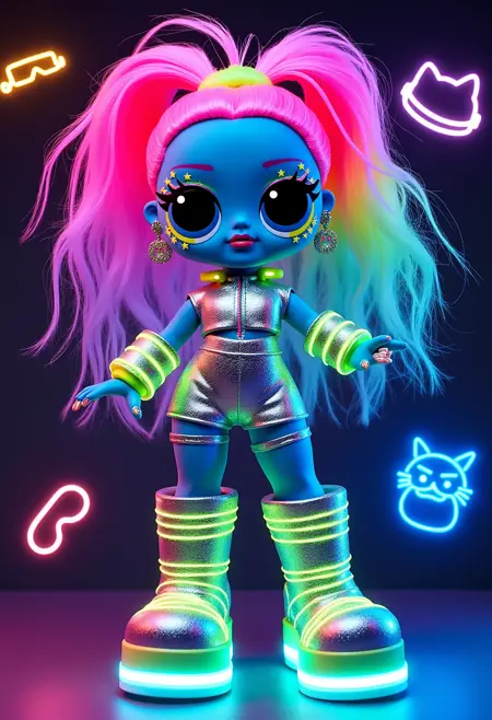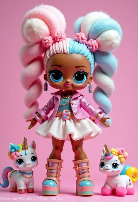 これは、スタイル化され、誇張されたLOL OMGドールの写真です。