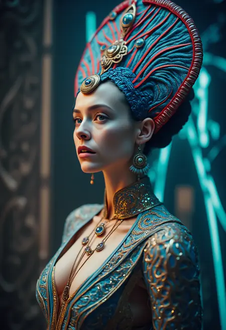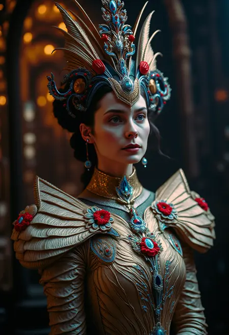 这个LoRA为图像赋予了复古未来主义的巴洛克风格。