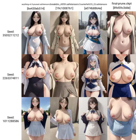 · 缺点2:默认输出均为大胸,已尽力尝试加入 small 与 medium 小胸样本,但模型仍倾向于生成大胸,看来 AI 的口味和我一样偏好大胸