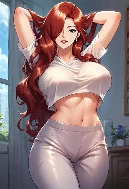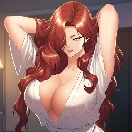 (( lora:chae-hee:1 ,蔡熙,锐利的棕色眼睛,清澈双眼,明亮瞳孔,美丽眼睛,美丽的红发,又长又美,头发遮住一只眼睛,巨大而蓬松的胸部,纤细腰肢,宽臀,美丽肌肤,自然美,超凡美女,迷人女性,超性感女性,欲望之躯,具有诱惑性露骨身材的性感女性,性感体态,丰腴身材,性感美艳,))
