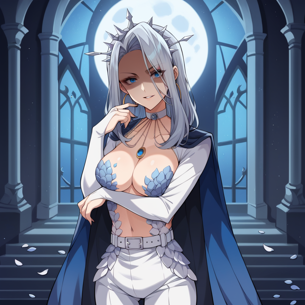 Amalee, long hair, blue hair, grey hair, blue eyes,