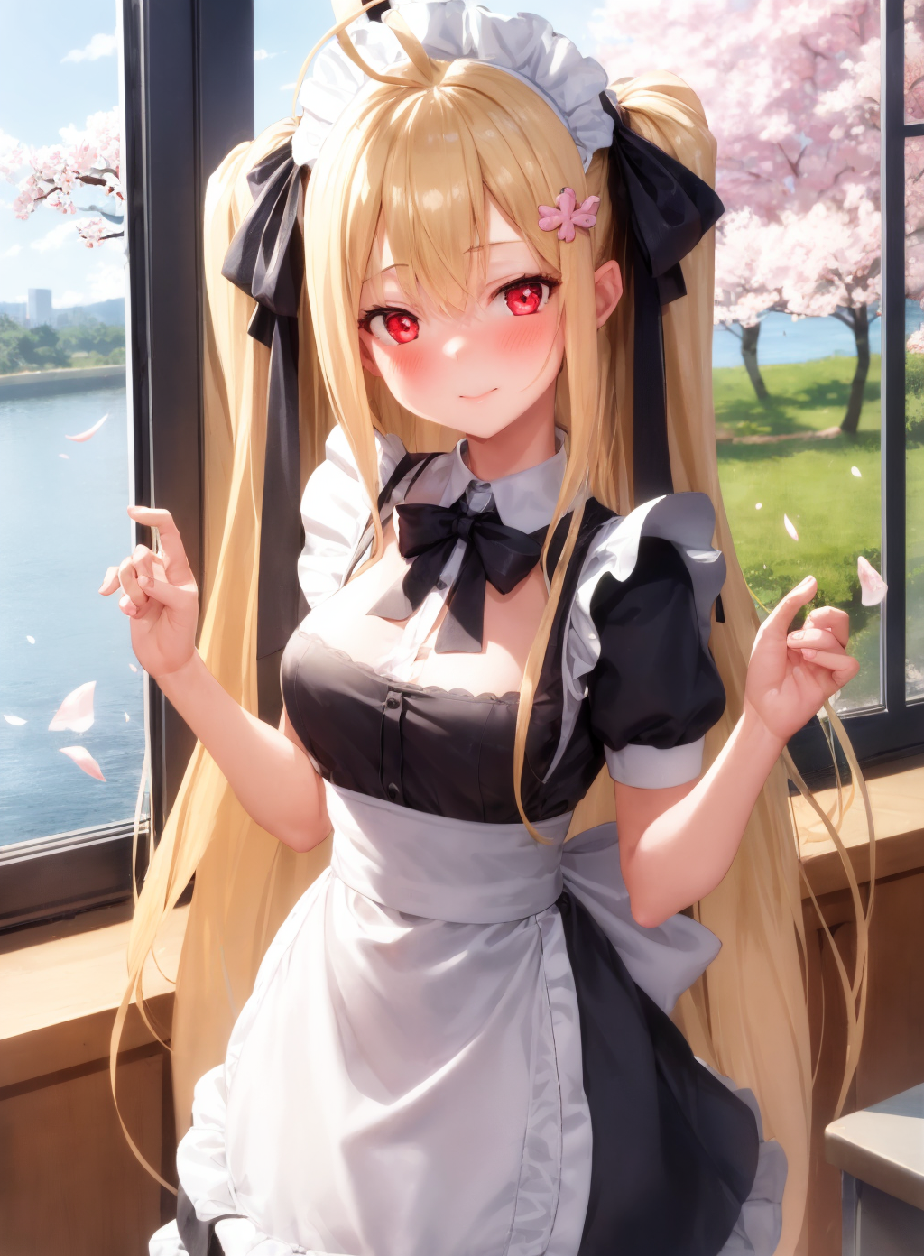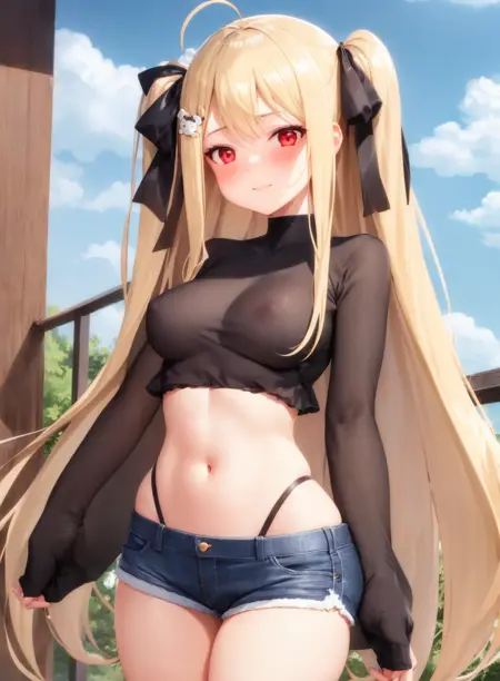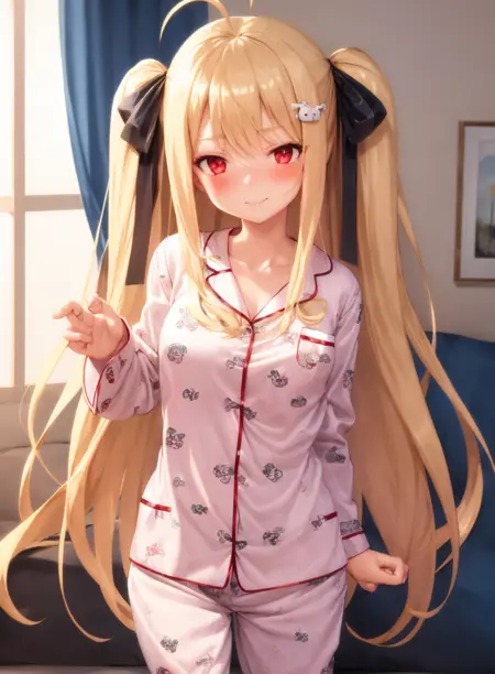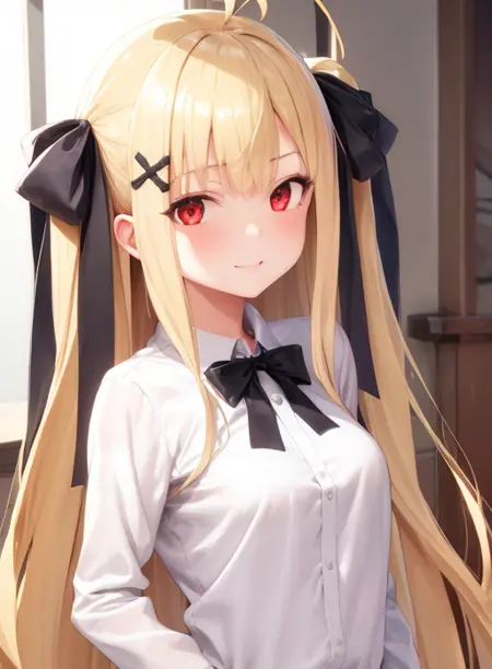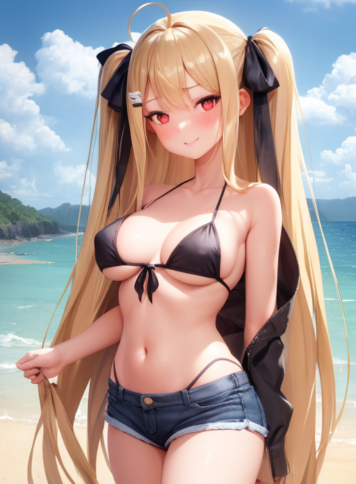 | トレーニングワード | 1girl, blonde hair, long hair, ribbon, red eyes, two side up, hair ribbon, hair ornament, black ribbon, ahoge, very long hair, bangs,コピーしました! 1girl, blonde hair, long hair, ribbon, red eyes, two side up, hair ribbon, hair ornament, black ribbon, ahoge, medium breasts, very long hair, bangs, コピーしました! |