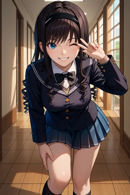 Amagami SS의 모리시마 하루카. Pony Diffusion V6 XL로 학습됨. 0.8-1.0 강도에서 테스트됨.