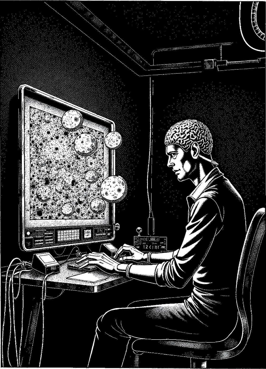 오래된 RPG 책을 따라 그리는 것을 기억하는가? 빌린 지니와 펄프 SF 일러스트의 페이지를 복사했던 기억이 있는가? 여기서 당신은 향수의 땅에서 놀 수 있는 기회를 얻는다. Mothership 같은 레트로펑크 SF RPG 및 지니에 완벽하게 사용할 수 있다.