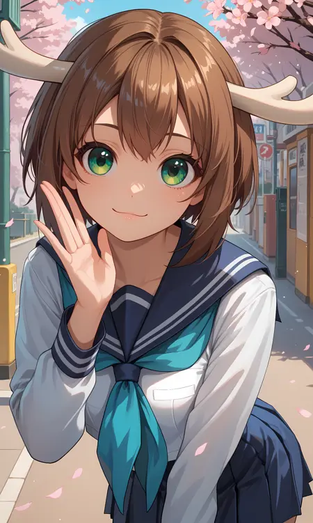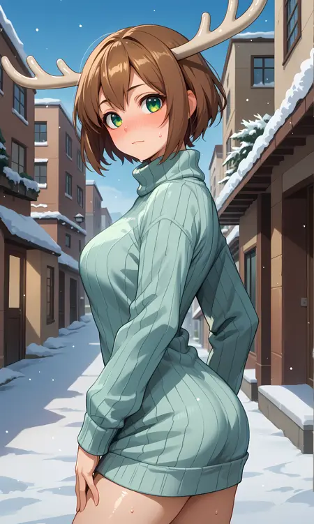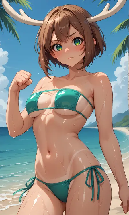 nokotan、青い目、緑の目、ツートーンの目、茶色の髪、短い髪、鹿の角