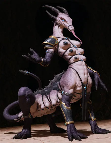 FiendofSlaanesh, monster, pincers, horns, long tongue, tail, taur,