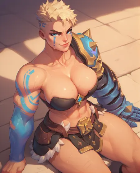 senjaxl, 파란 눈, 금발, 얼굴 문신, 단발,