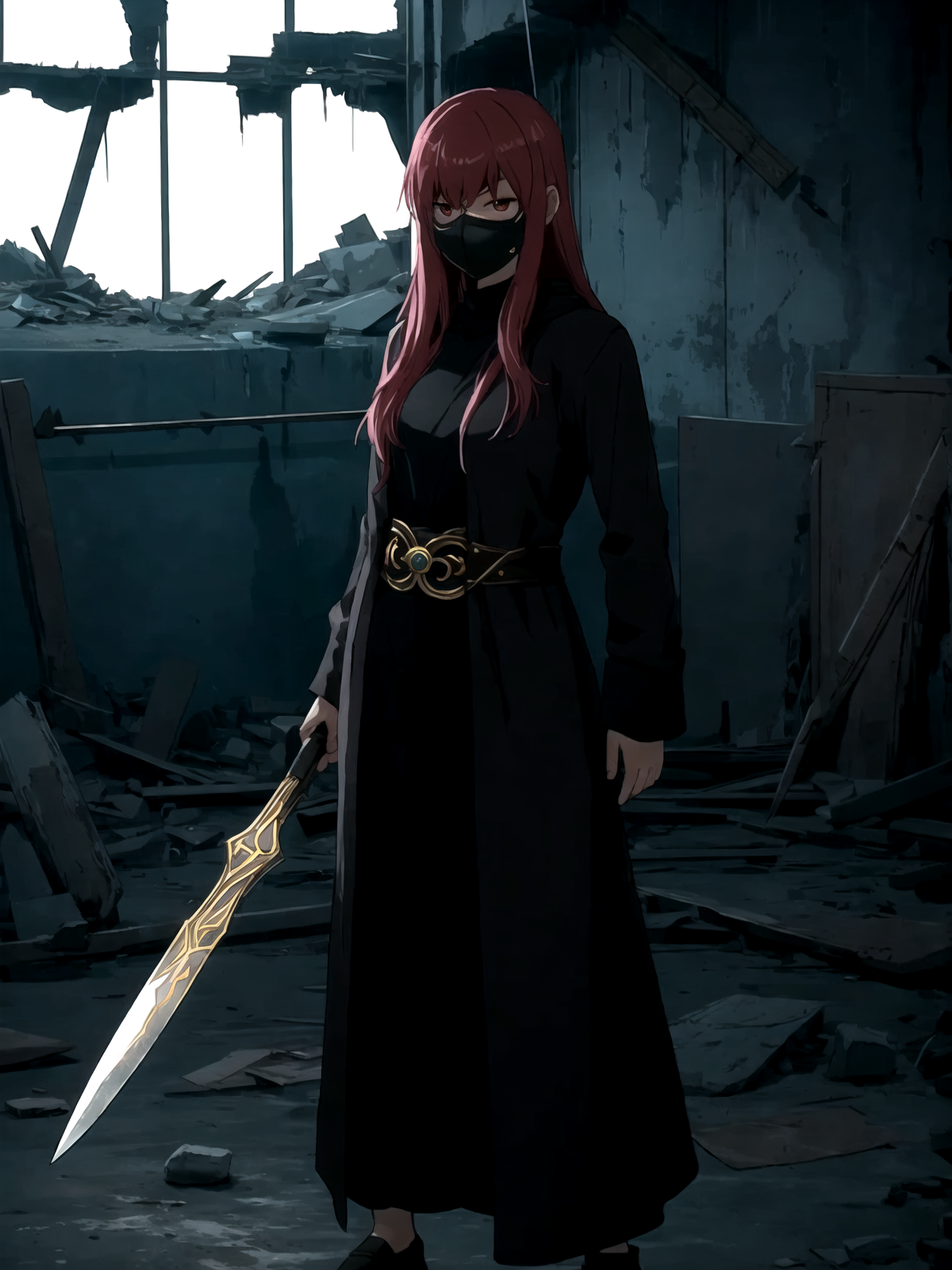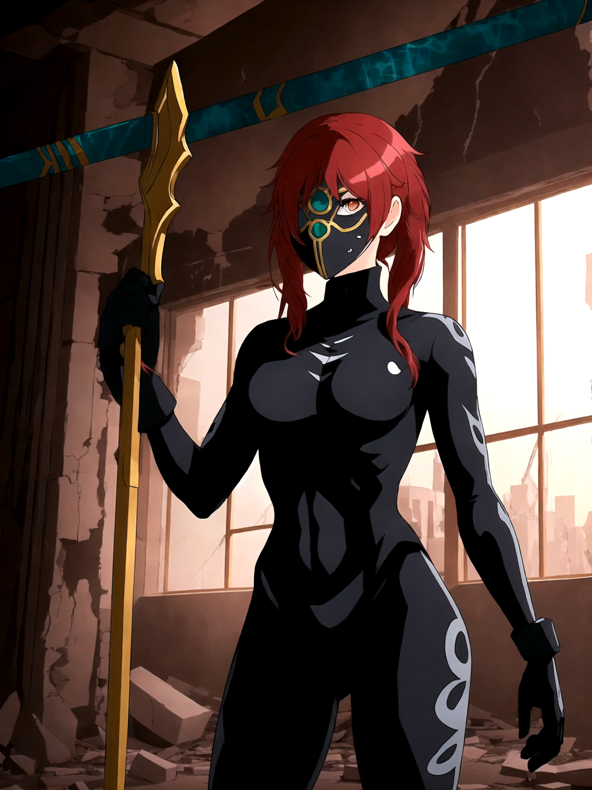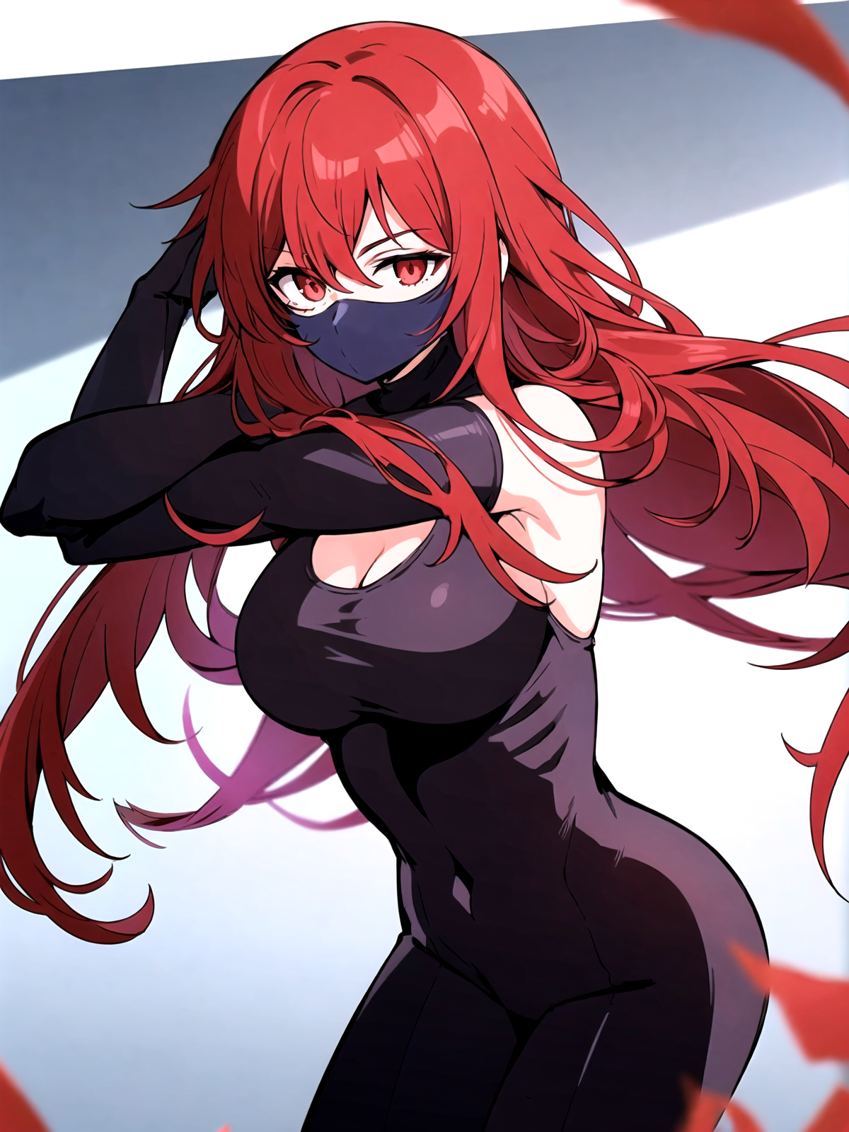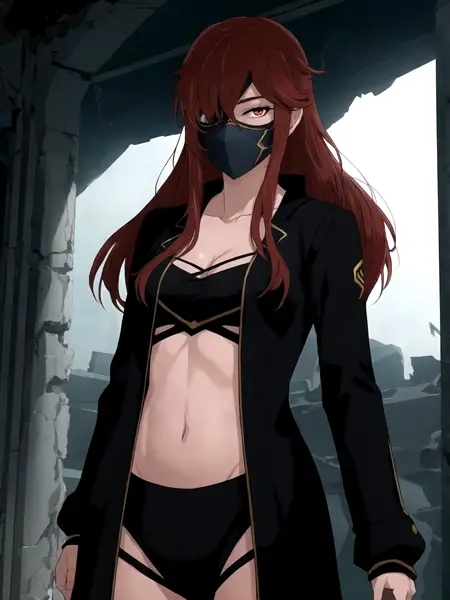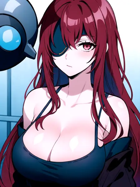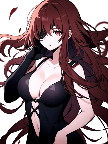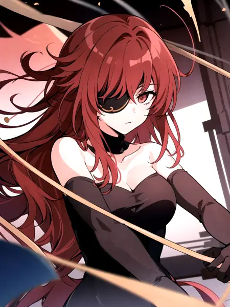 tags: lora:Hwa\_Ryun\_V5:0.7, lora:Hwa\_Ryun:1, red hair, long hair, Hwa Ryun, eyepatch, red eyes, large breasts,