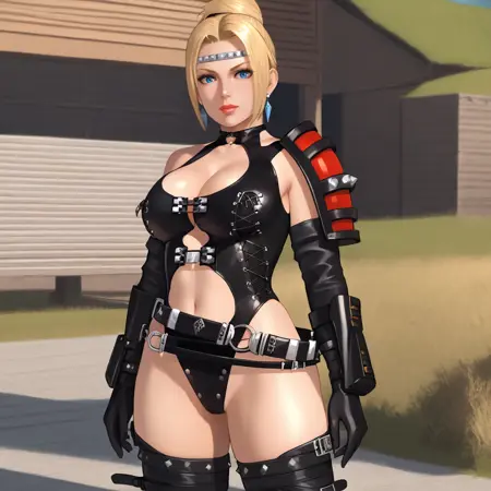 - トリガー:RachelNinjaGaiden, 1girl, 大きな胸, 金髪, ジュエリー, ピアス, 肘までグローブ, 青い目, 衣服の切り抜き, サイハイズ, おへそ切り抜き, 黒いレオタード, ベルト, 胸元切り抜き, 肩アーマー, 単一の髪の結び目, 黒い手袋, サークレット, 胸の間, 唇