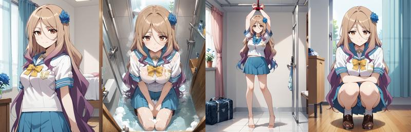 school uniform,serafuku,blue skirt,pleated skirt