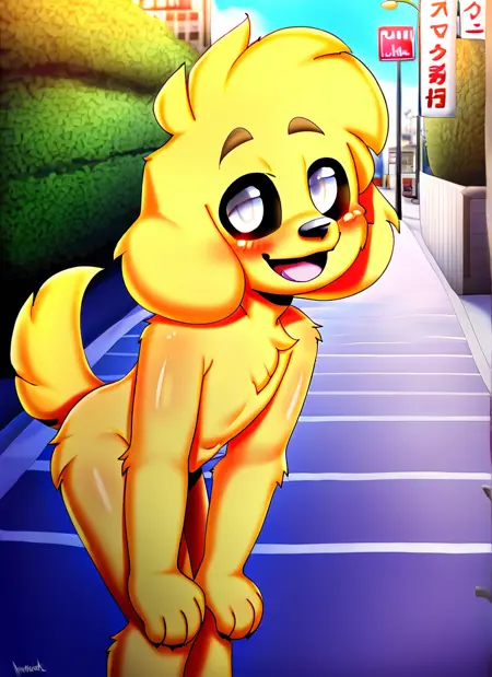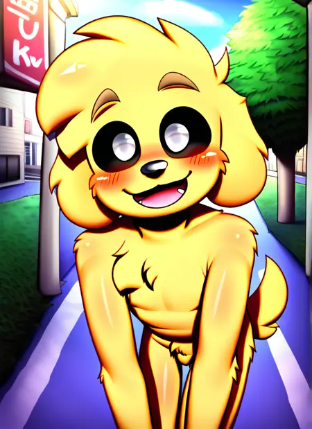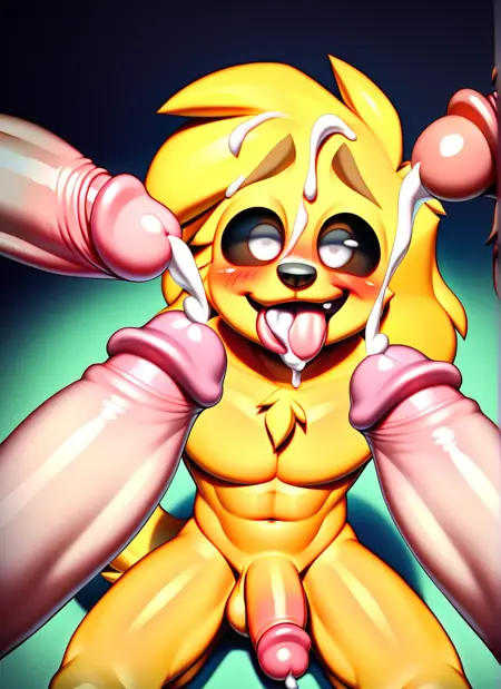 mikecrack, animal ears, tail, black eyes, white eyes,furry,dog ears, dog tail, black sclera, body fur, animal nose, yellow fur, dog boy