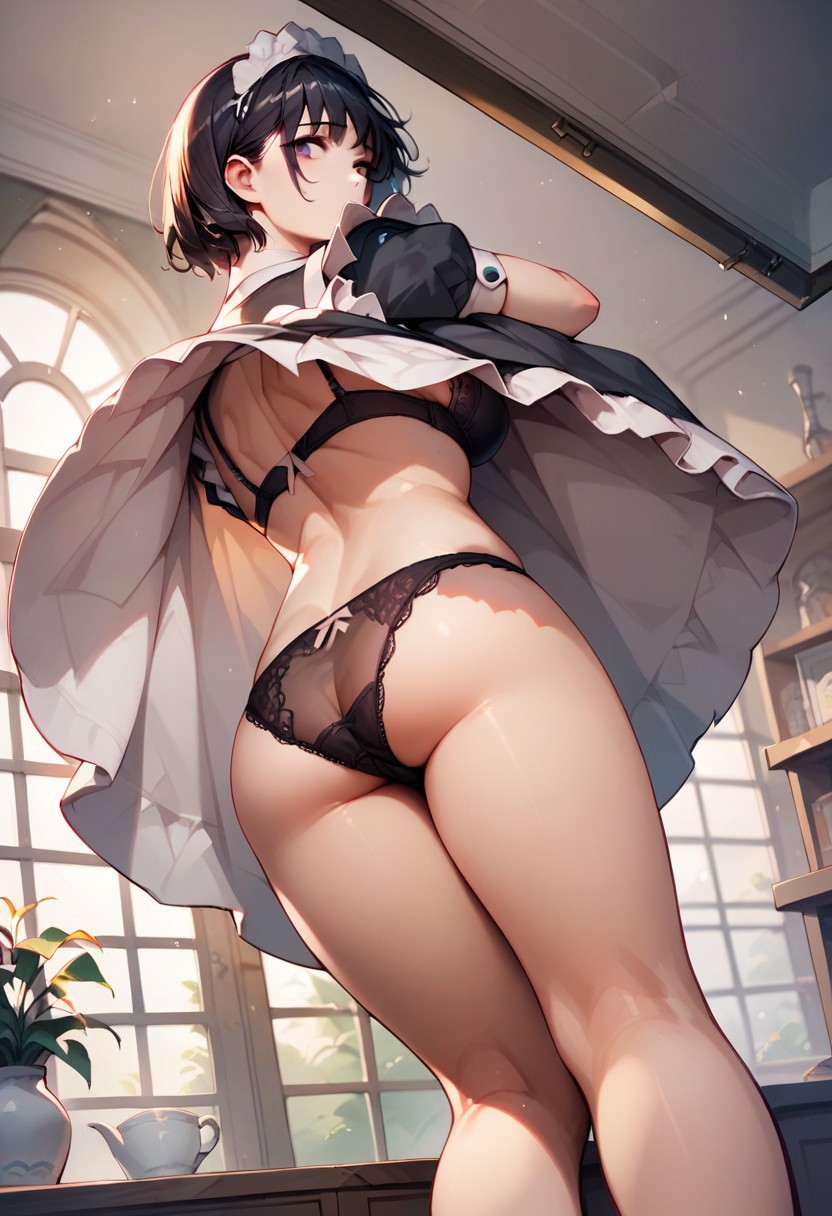 自分自身でスカートを持ち上げる。