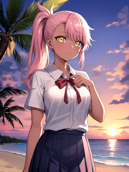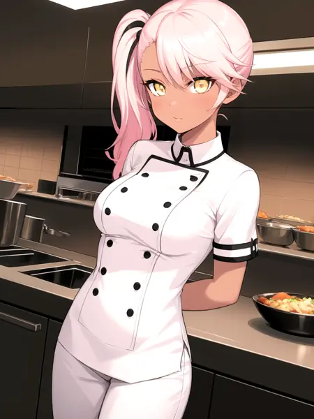 Misc Outfits: dschloe, pink hair, side ponytail, yellow eyes, dark skin, dark-skinned female