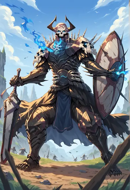 显著标签:盔甲、全身盔甲、骑士、头骨、面具、角、肩甲
