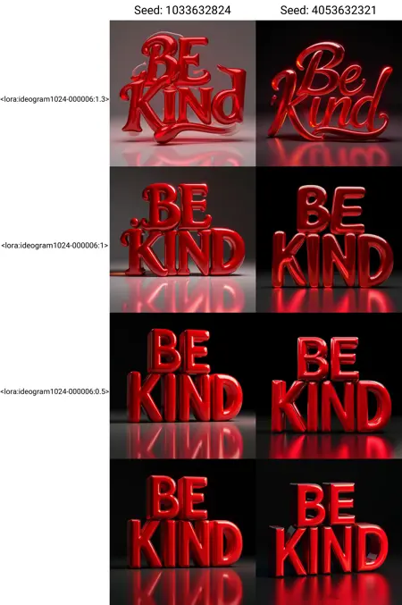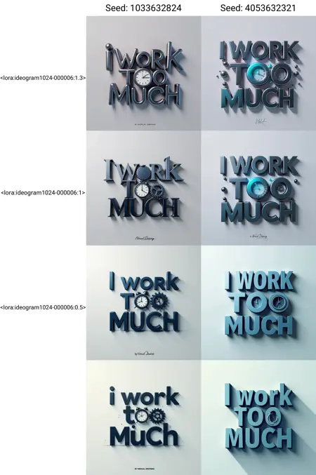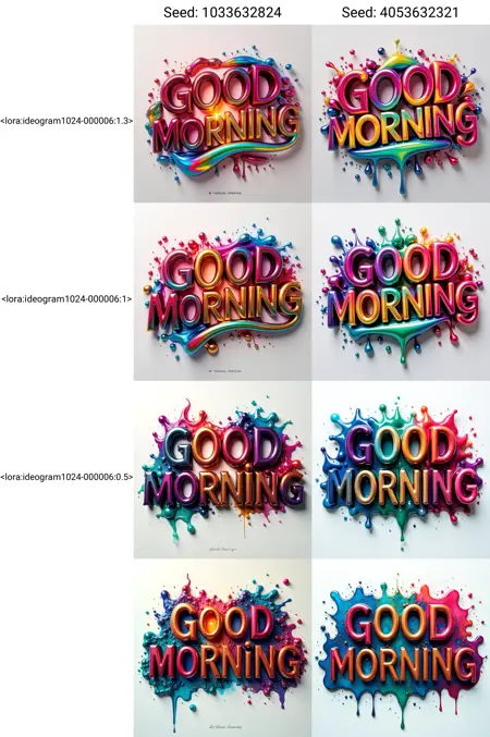 使用 LoRA 权重在 0.5 到 1.5 之间,权重越高,创意性越强,但文字可读性可能会下降。