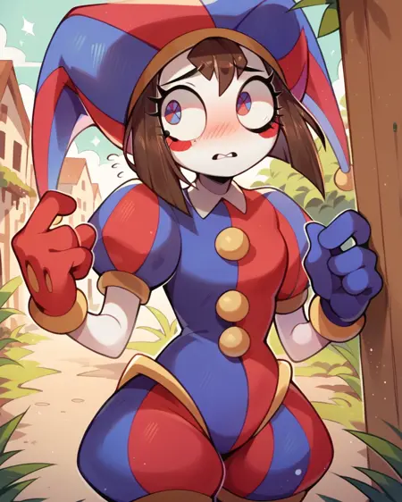 Despite this, the LORA will often give Pomni human skin if you don't prompt "colored skin, white skin" etc. The LORA can also struggle with making Pomni properly nude if you prompt it, so make sure to use (brackets) if you have trouble.