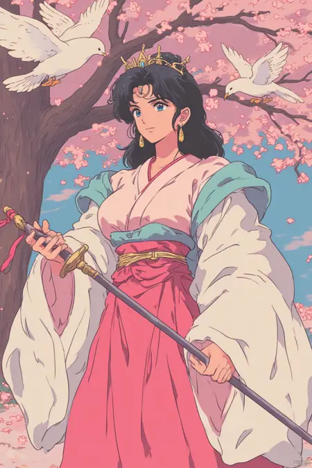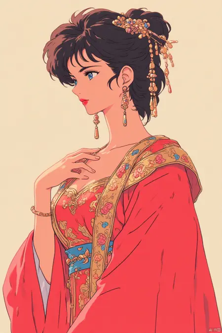 还原上个世纪的复古动漫风格,面部轮廓明显不同于现代动漫。